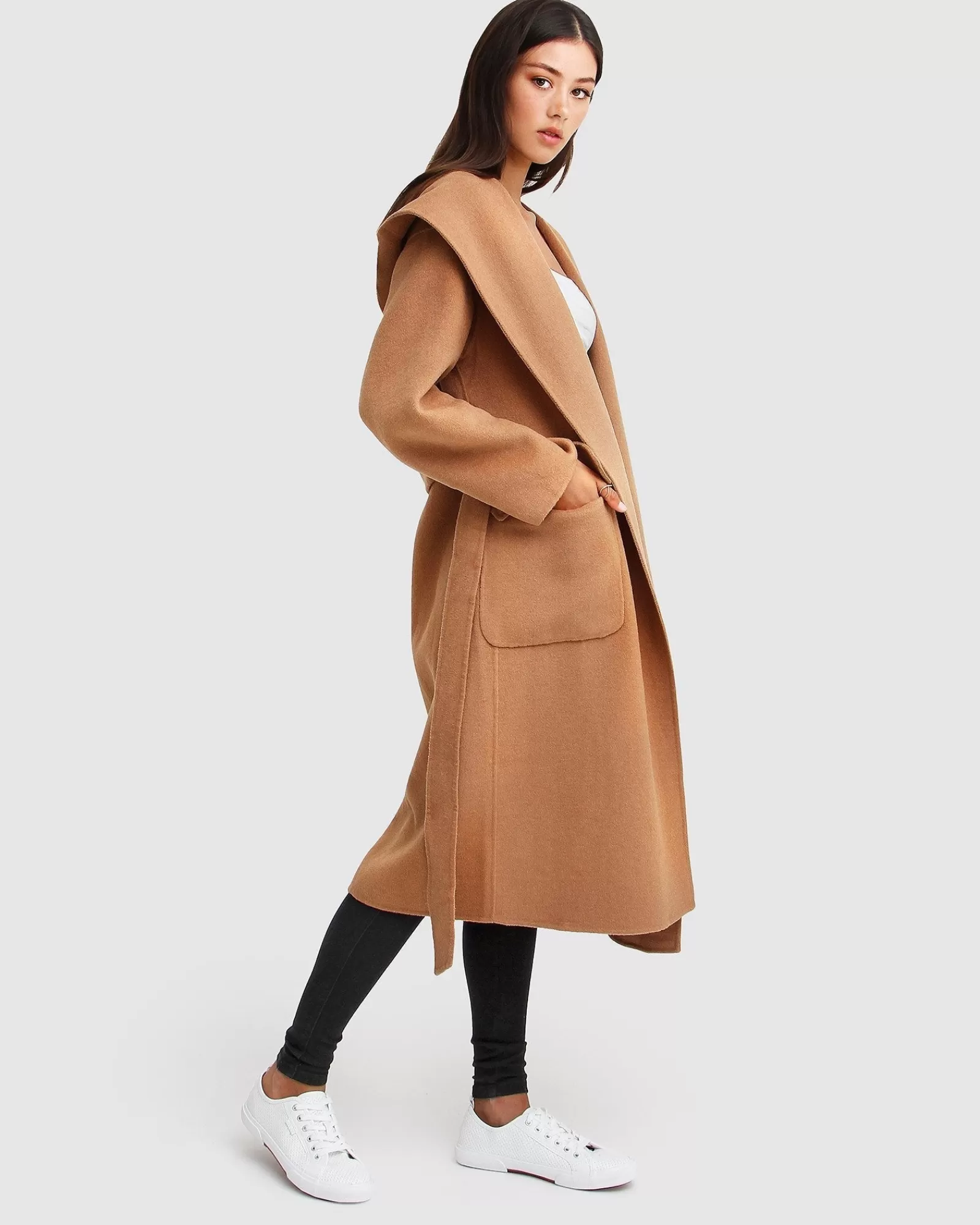 Completed with a hood, the Runaway Wool Blend Robe Coat is our functional take on this new winter key item. To be worn at your leisure, wide open or closed, this coat will do the job with its warm and cosy styling.