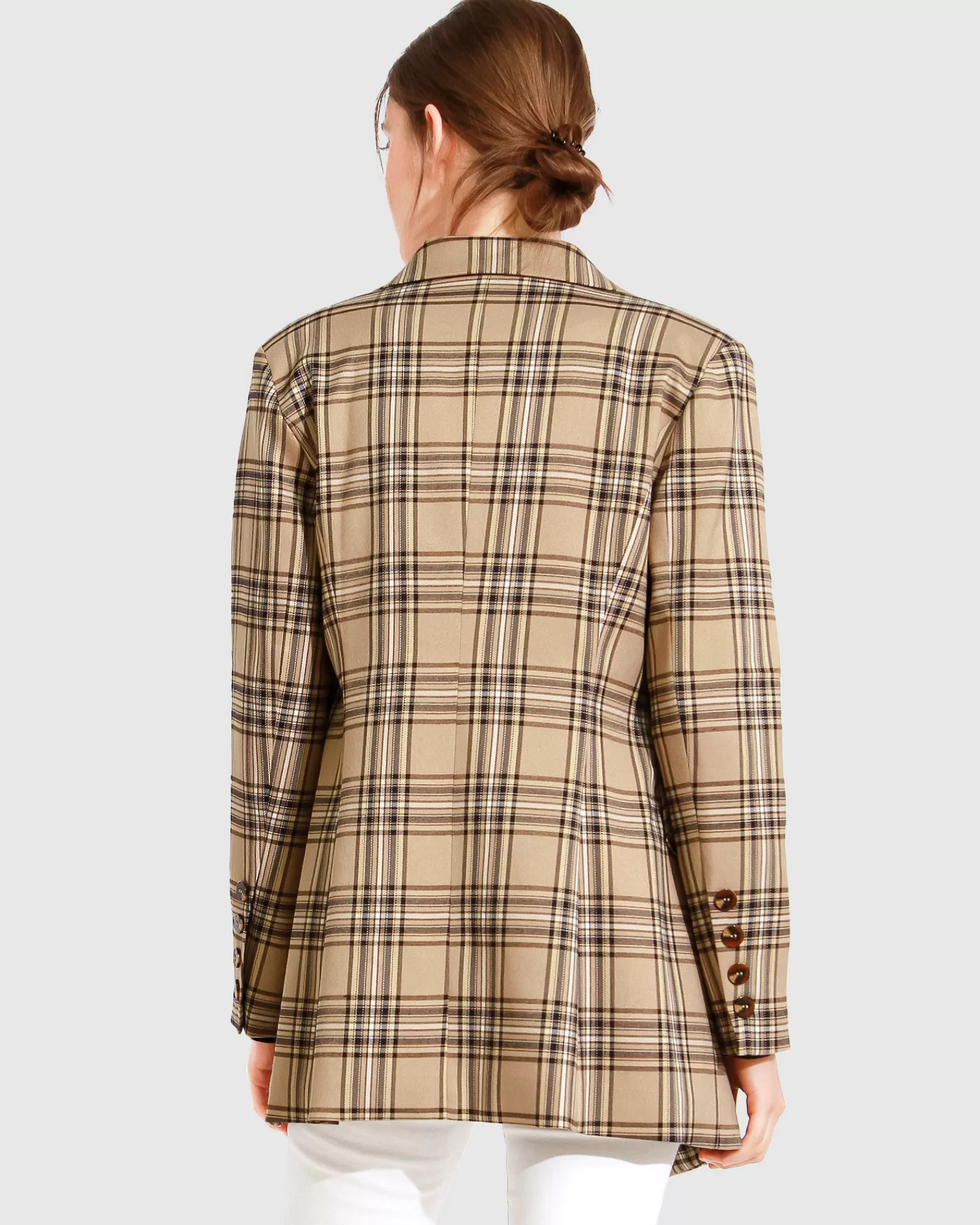 The Too Cool For Work Plaid Blazer ups your trend game with its own version of the menswear check blazer revamped in a feminine glen plain and fitted cut. This long line blazer easily pumps up your style whether paired with tailored trousers or denim. Be sure to flash it open to show off its fun, printed lining.