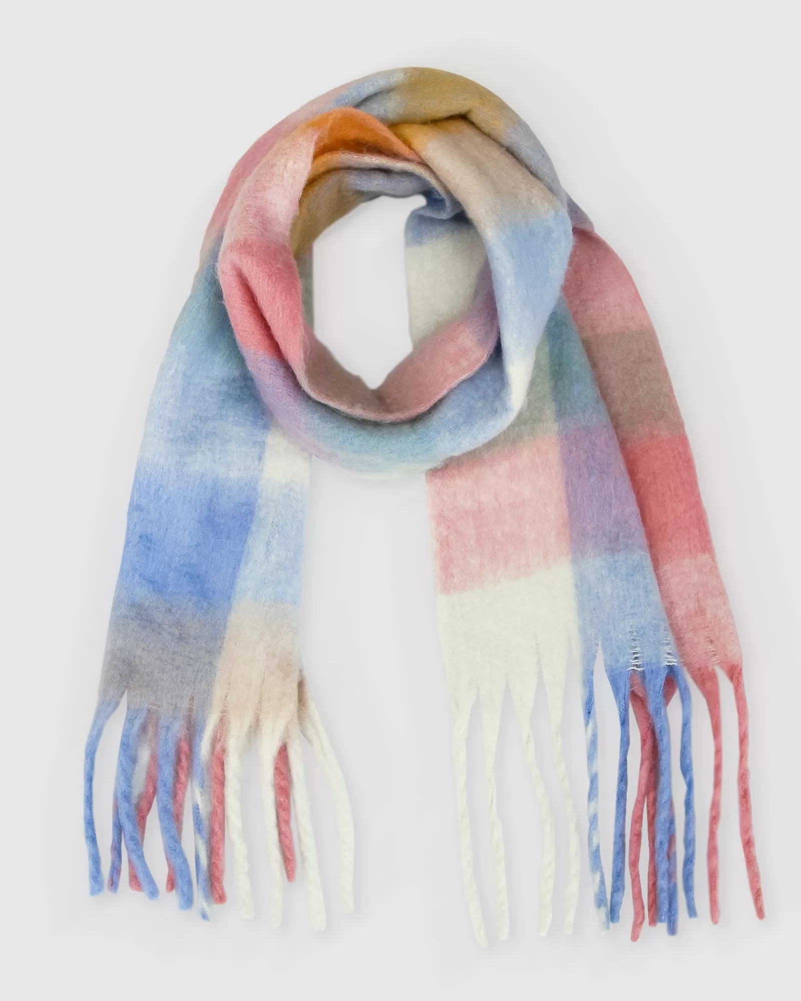 Pure cotton candy dreams, the Vail Checkered Scarf will have you hoping for cold weather just so you can wear it.