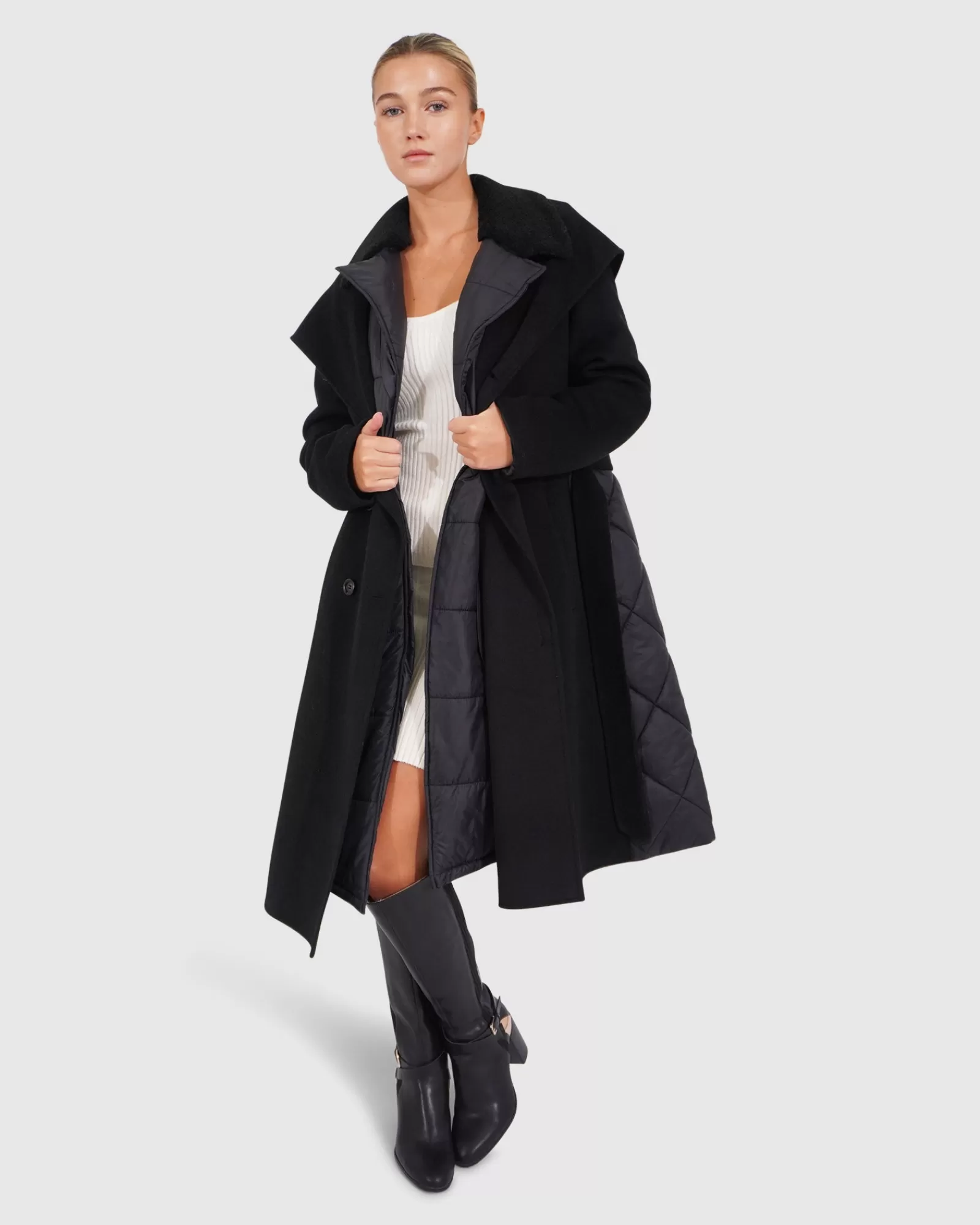 Be ready for unpredictable weather this winter in the Walk Me Home Convertible Coat featuring hooded, wool blend outer coat, and a removeable quilted puffer inner layer which can be worn independently – you’ll be comfortable all through the cool transeasonal months and extra cosy when the temperature drops in winter.