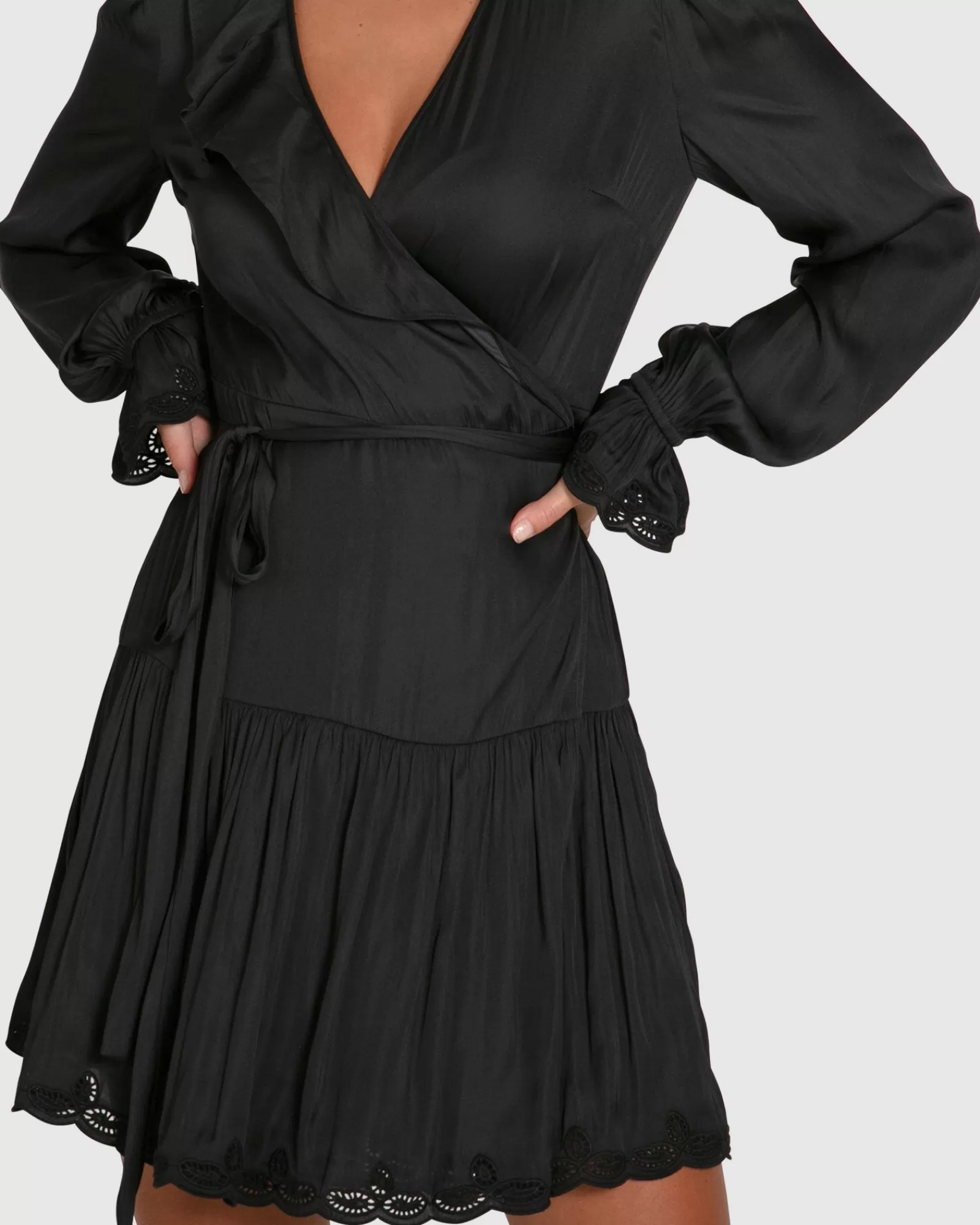 Delicate embroidery trails around the cuffs and hem of the Wild Flower Embroidered Wrap Dress, whilst a tie waist ensures the perfect adjustable fit on this flattering wardrobe go-to.