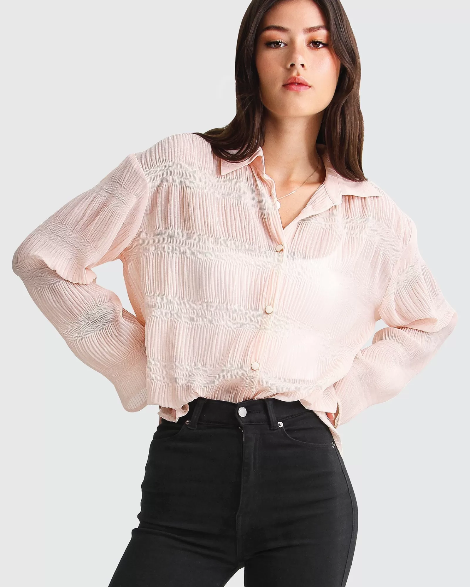 Belle & Bloom Yoko Shirred Chiffon Blouse –
